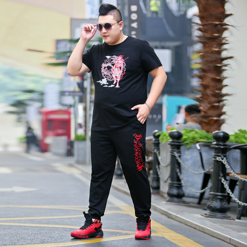 胖子大码短袖T恤套装男宽松肥佬半袖体恤加肥加大休...