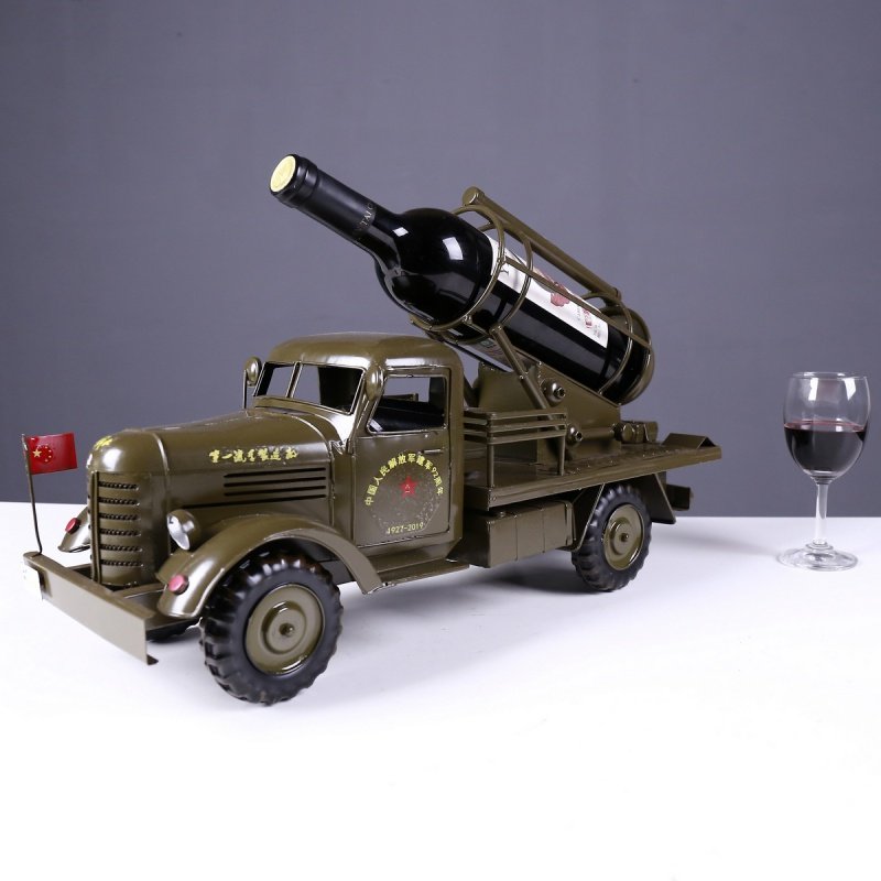 热销创意复古红酒架纸巾盒抽纸盒摆件铁艺军车模型...