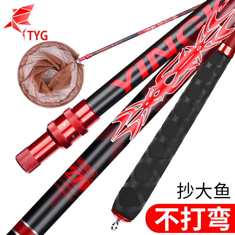 钓鱼抄网杆碳素抄网竿超硬伸缩操网抄鱼网抄网头折...