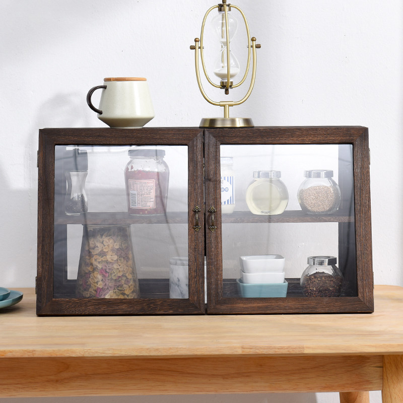 实木防尘透明化妆品收纳柜饰品展示柜茶柜手办摆件...