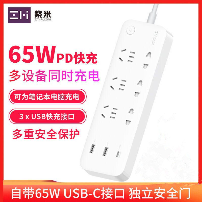 ZMI紫米65W桌面PD充电器插排插线板快充头紫米小米6...