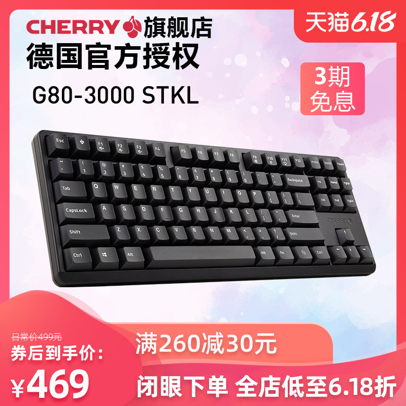 CHERRY樱桃G80-3000S TKL办公游戏机械键盘87键黑轴...
