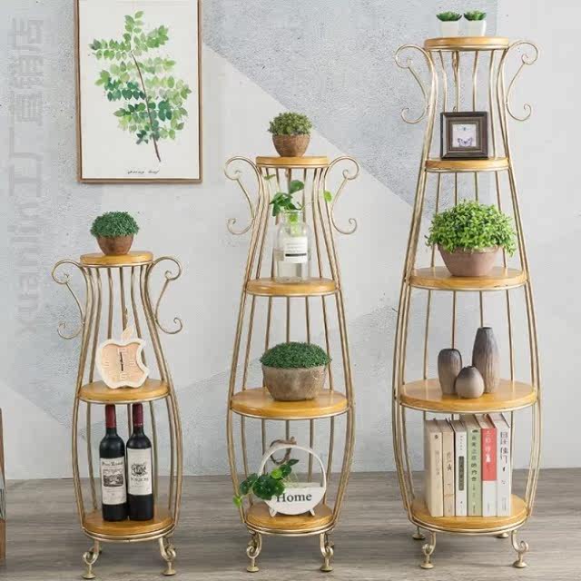 复古花几置物架子花架落地式装饰架轻奢阶梯北欧实...