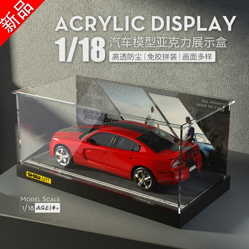 卡威1:18仿真合金汽车模型亚克力防尘盒停车场景车...