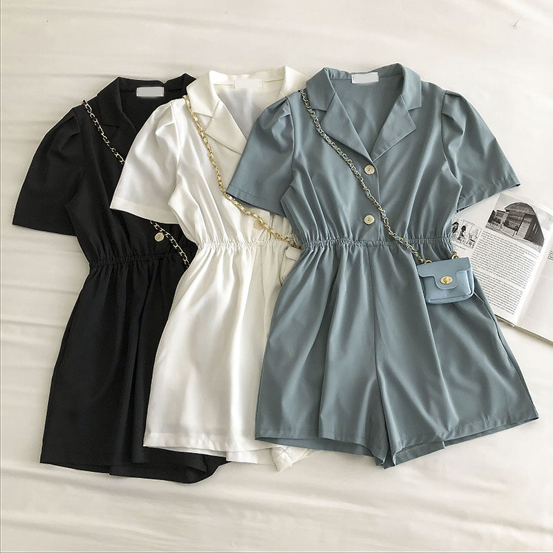 西装领连体裤女夏2020新款韩版百搭高腰两扣简约短...