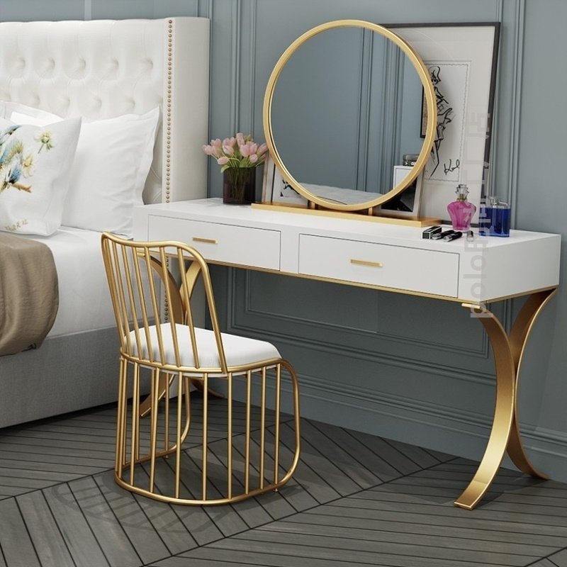 铁艺组合梳妆柜板简约轻奢公北欧化妆桌椅寓抽屉卧...