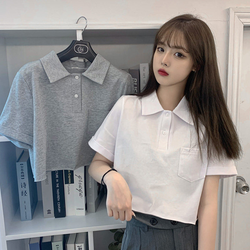 2020夏季新款韩版短款露脐宽松POLO领基础款短袖T恤...