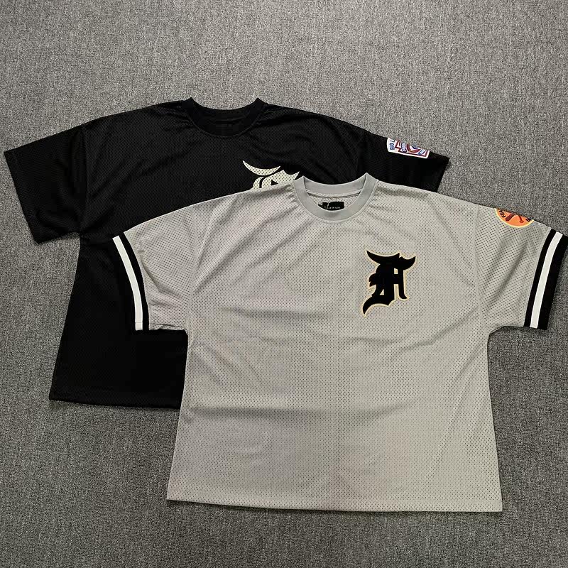 Logan 刺绣徽章网眼棒球衣服男女短袖T恤