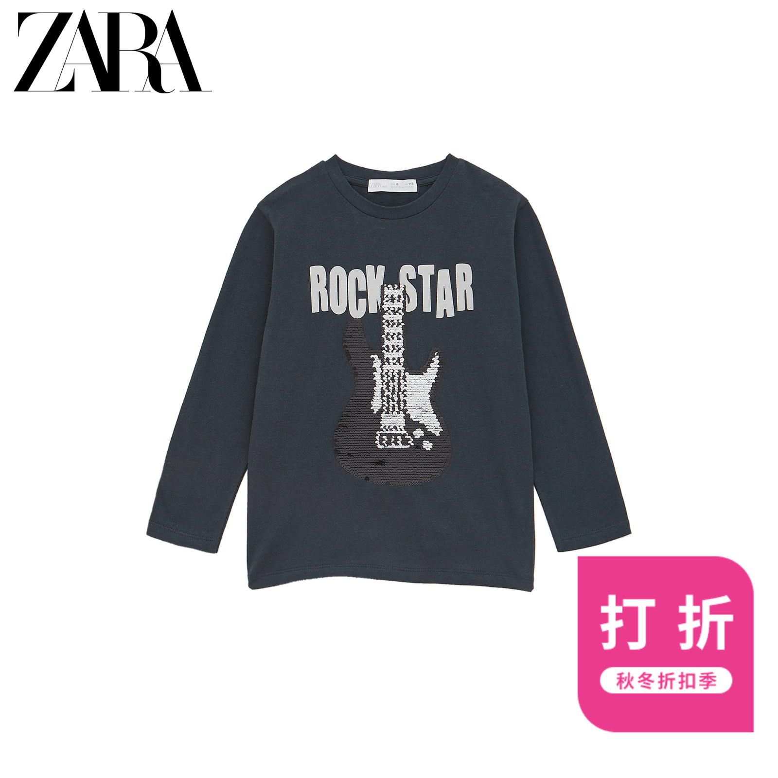 ZARA 秋冬新款 童装男童 珠片吉他图案 T 恤 062087...