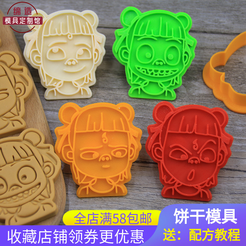 哪吒魔童降世动画卡通饼干模具家用3d立体按压烘焙...