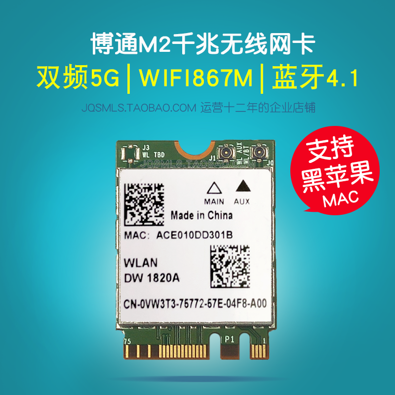博通BCM94350ZAE无线网卡ac双频5g千兆蓝牙4.1MAC黑...