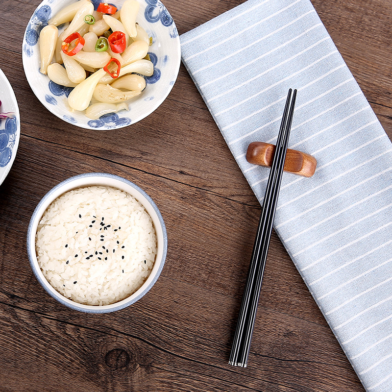 日本家用简约环保合金筷子5双家庭装高档餐具防滑防...