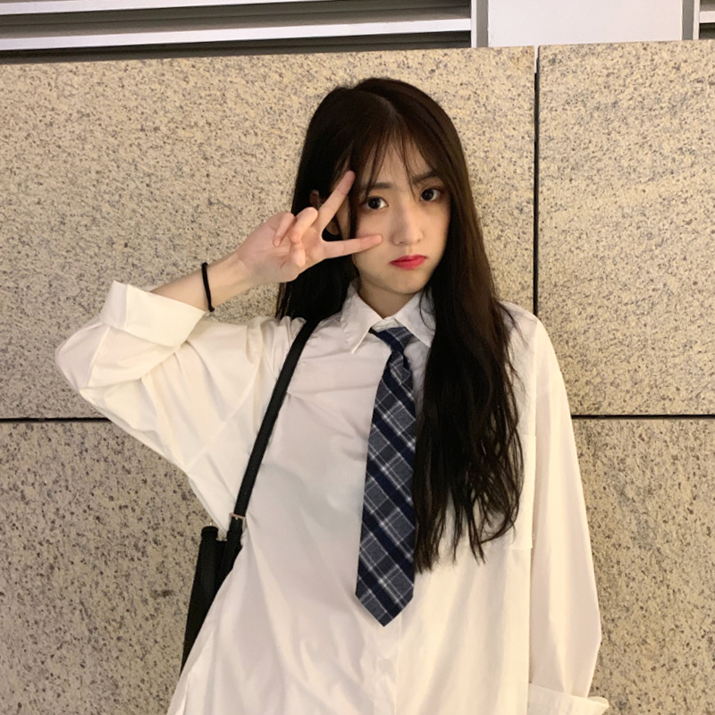 2019秋季韩版新款洋气长袖Polo领宽松领带衬衫设计...