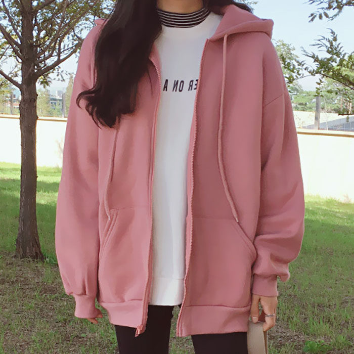 卫衣女秋冬ins韩版2019纯色连帽开衫外套waitmore宽...