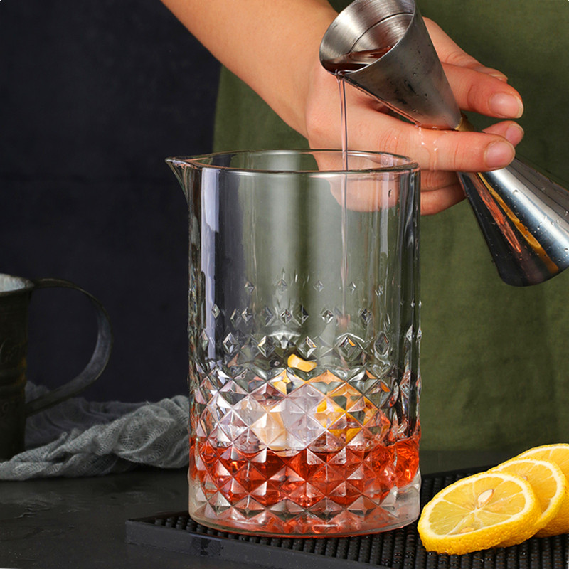 无铅玻璃刻花调酒搅拌杯调酒调酒杯mixing glass日...