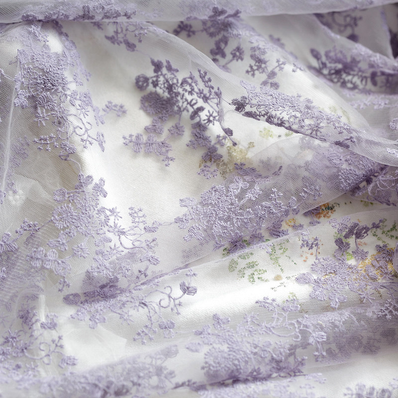 网纱布料紫色蕾丝刺绣面料婚纱服装窗帘娃娃衣背景...