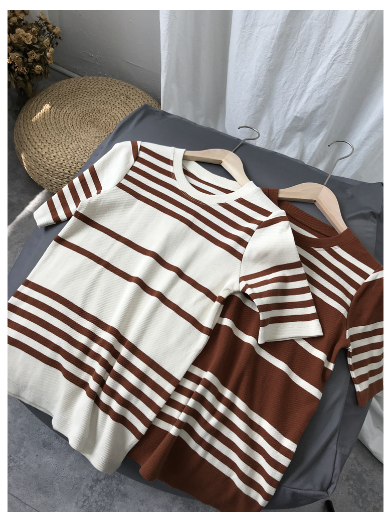 好品质早秋款气质显身材条纹T恤短袖针织上衣