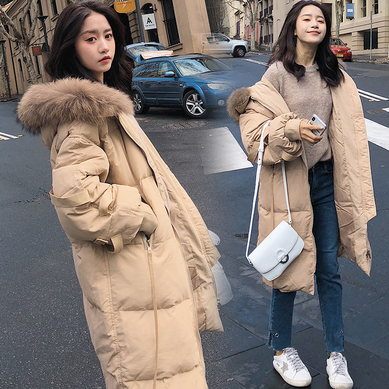 羽绒棉服女中长款过膝大毛领棉衣韩版面包服学生加...