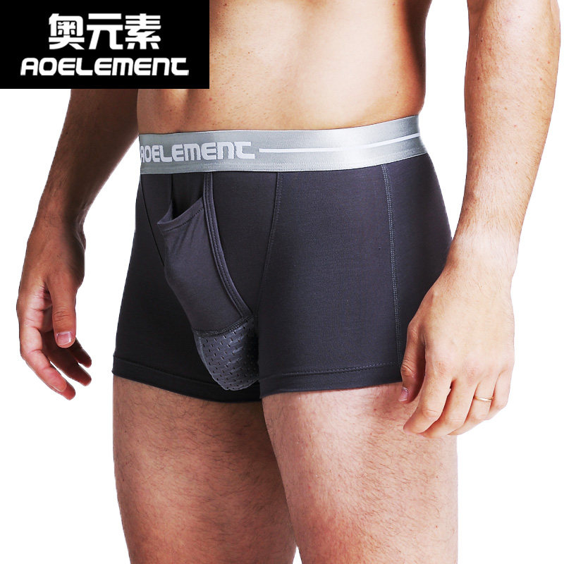 男士开档内裤大象JJ套枪蛋囊袋分离平角裤低腰性感...