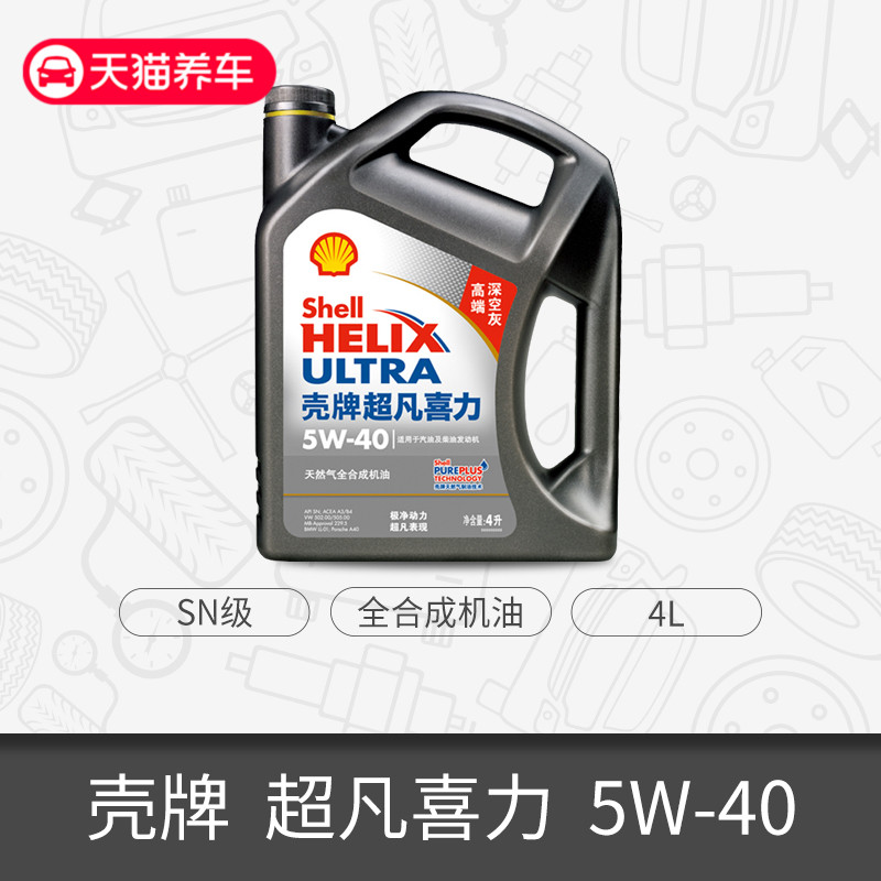 壳牌机油 天猫养车天然气全合成4L灰壳超凡喜力5W40...