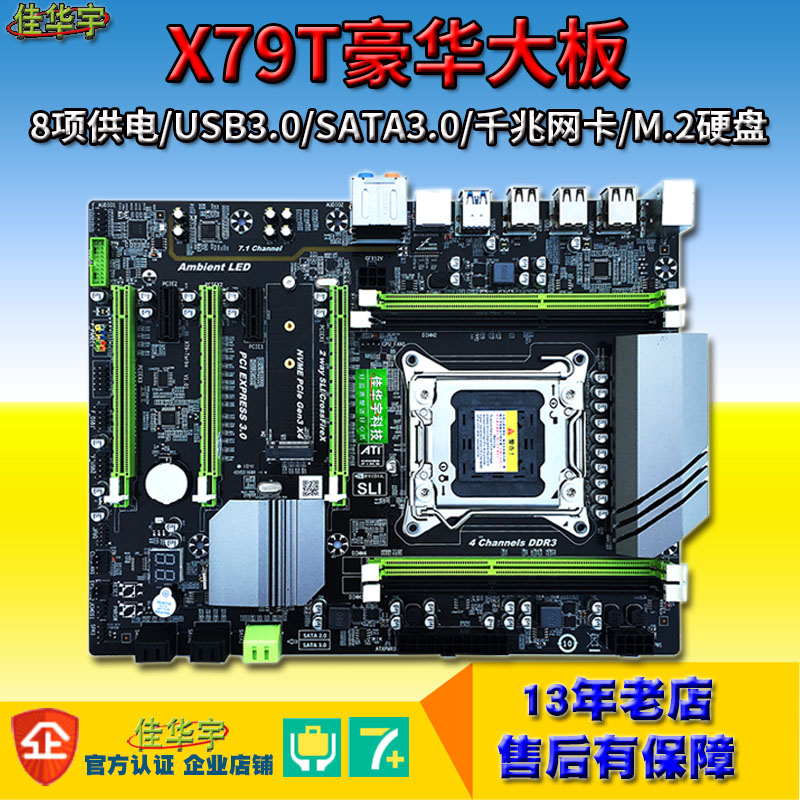 X79电脑主板2011针DDR3四通道大板M.2接口支持E5-26...