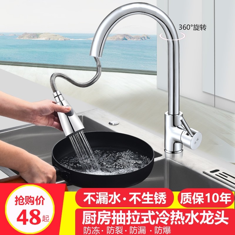 厨房抽拉式水龙头冷热家用304不锈钢水槽洗菜盆万向...