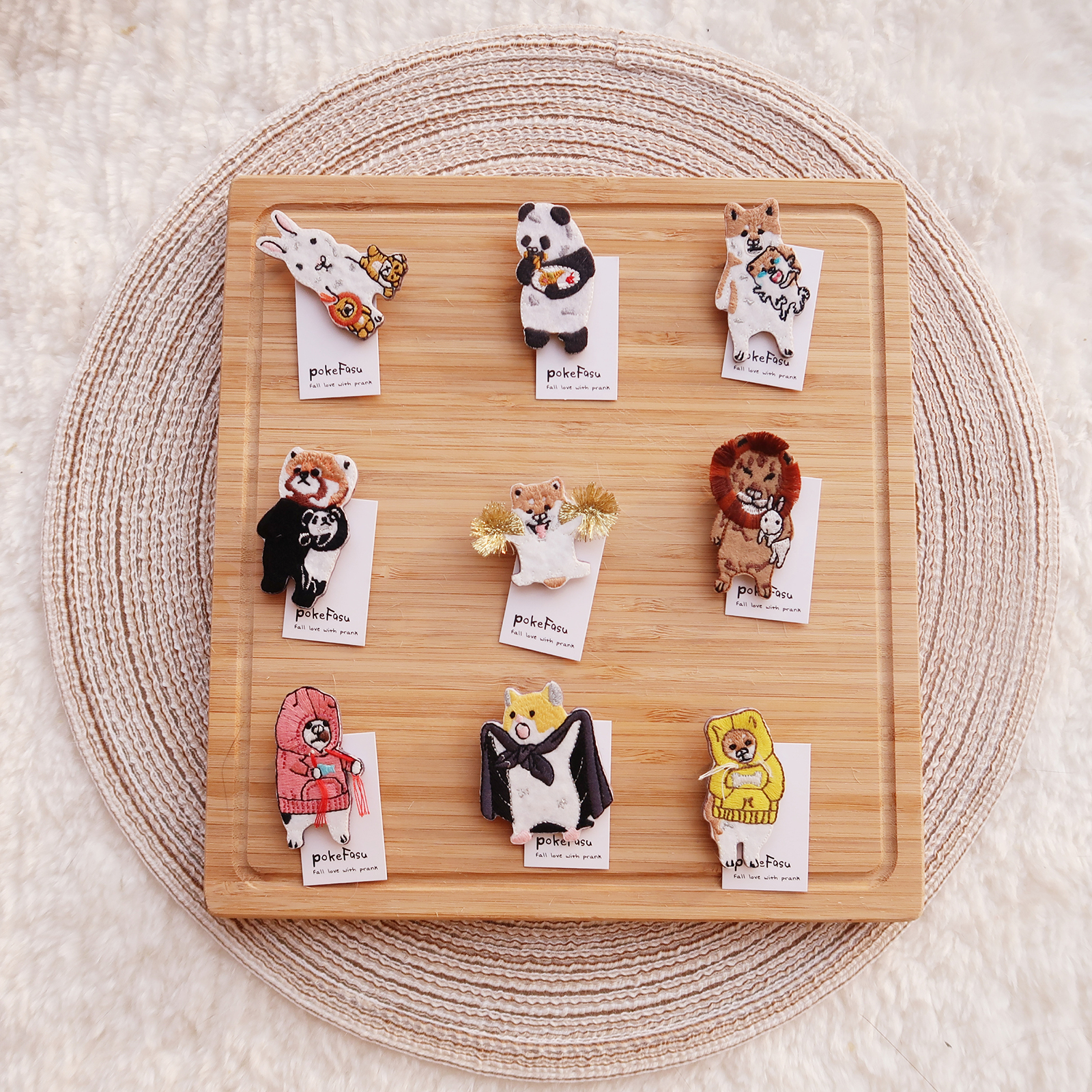 日本pokefasu老虎小狮子仓鼠兔子柴犬刺绣胸针博君...