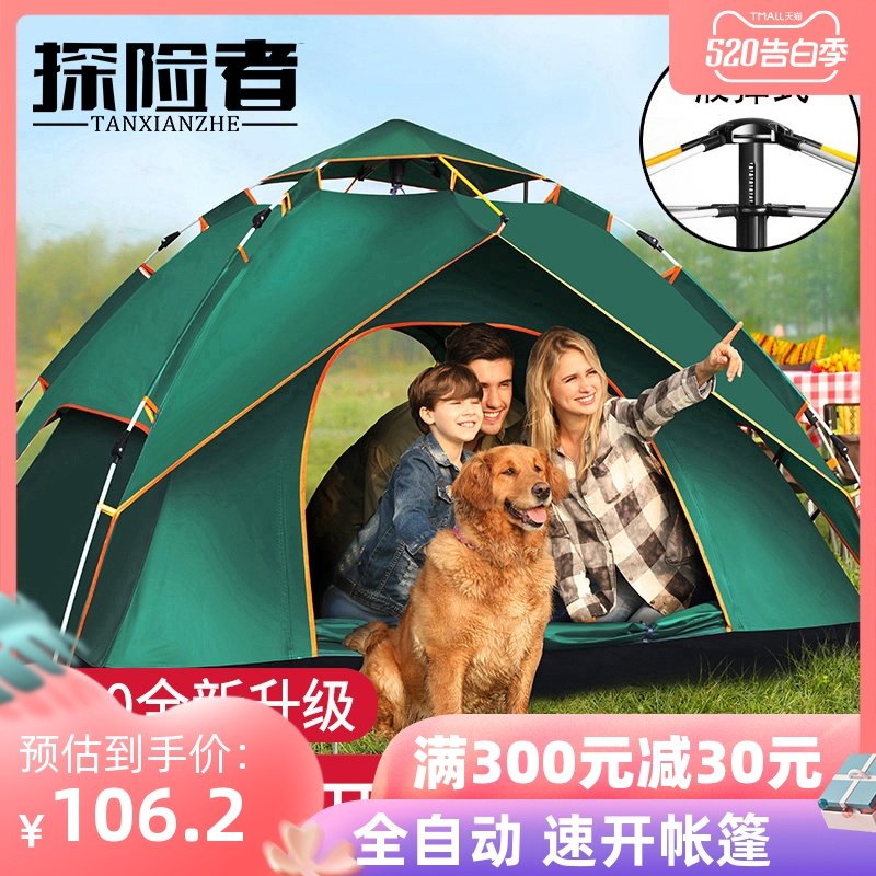 探险者全自动帐篷户外防暴雨3-4人加厚防雨双人2单...
