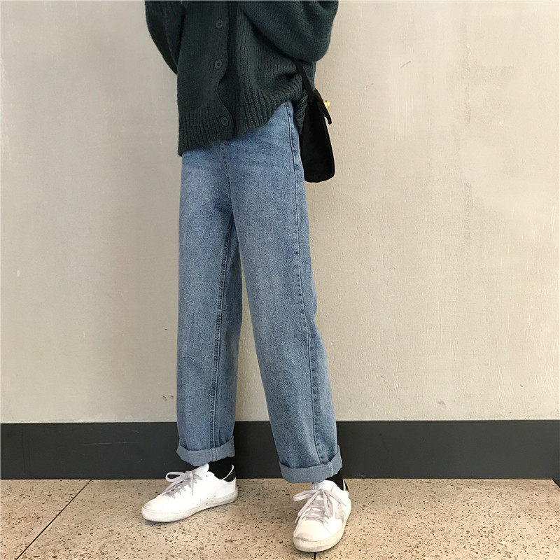 网红牛仔裤女秋高腰2019新款韩版ins学生宽松显瘦直...