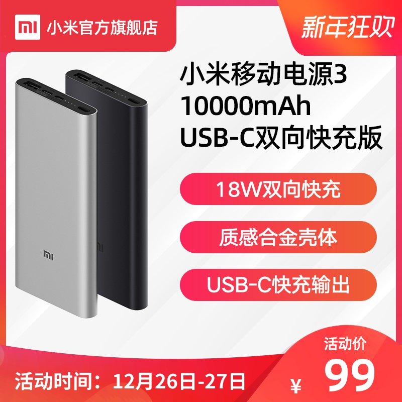 小米充电宝移动电源3 10000毫安超薄小巧便携大容量...