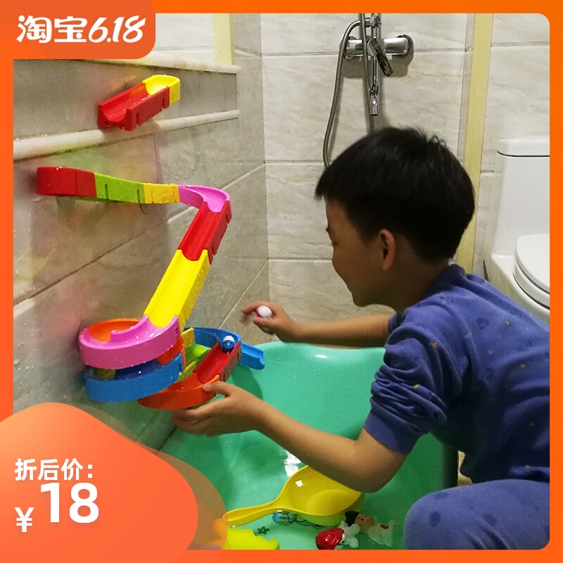 浴室滚珠轨道滑滑乐墙上拼装积木墙面戏水到渠成套...