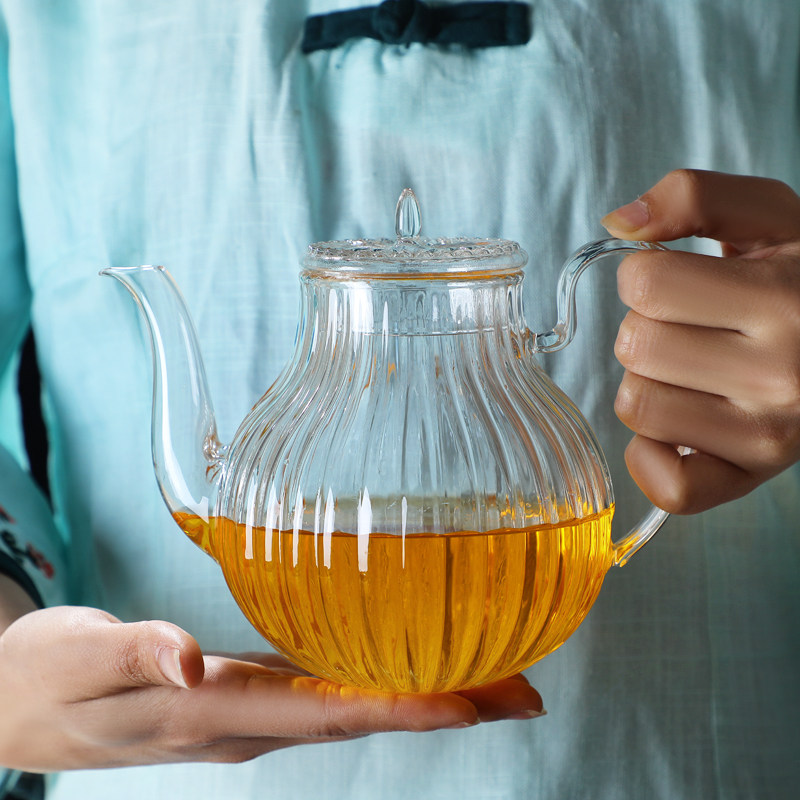 翘把菊瓣筋纹玻璃执壶透明耐热茶壶条纹壶电陶炉泡...