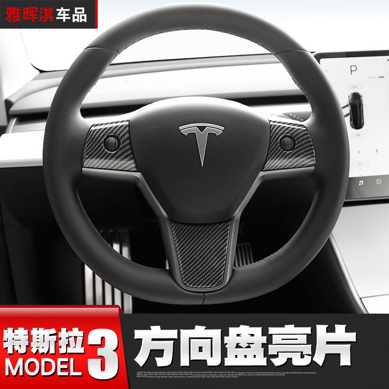 适用于tesla特斯拉model3碳纤纹方向盘按键装饰亮片...