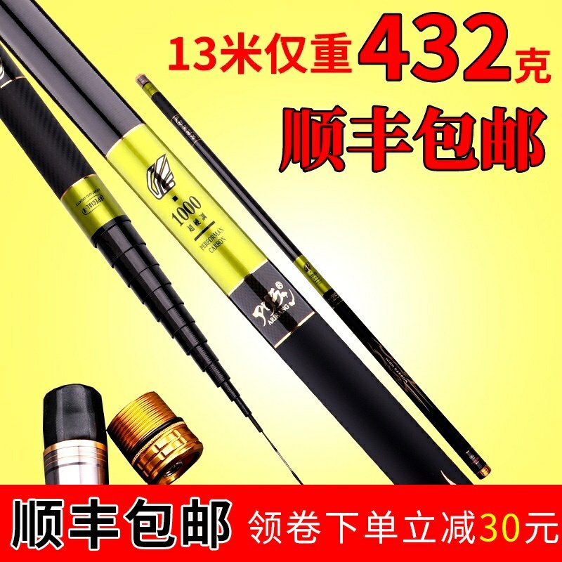 日本进口碳素鱼竿8/9/10/11/12/13米超轻超硬传统钓...