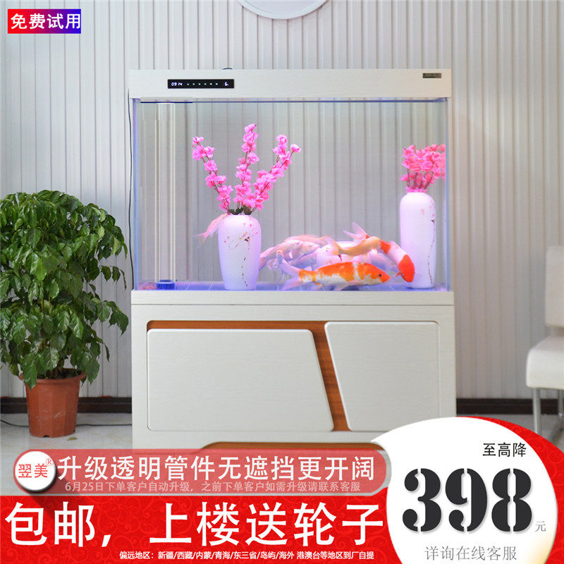 翌美超白玻璃下过滤鱼缸水族箱屏风靠墙中型免换水...