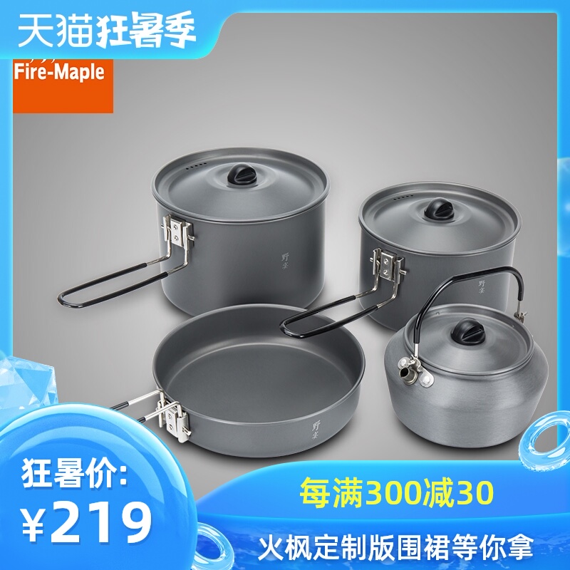 火枫野宴4便携套锅3-4人户外野餐用品0.6L茶壶带收...
