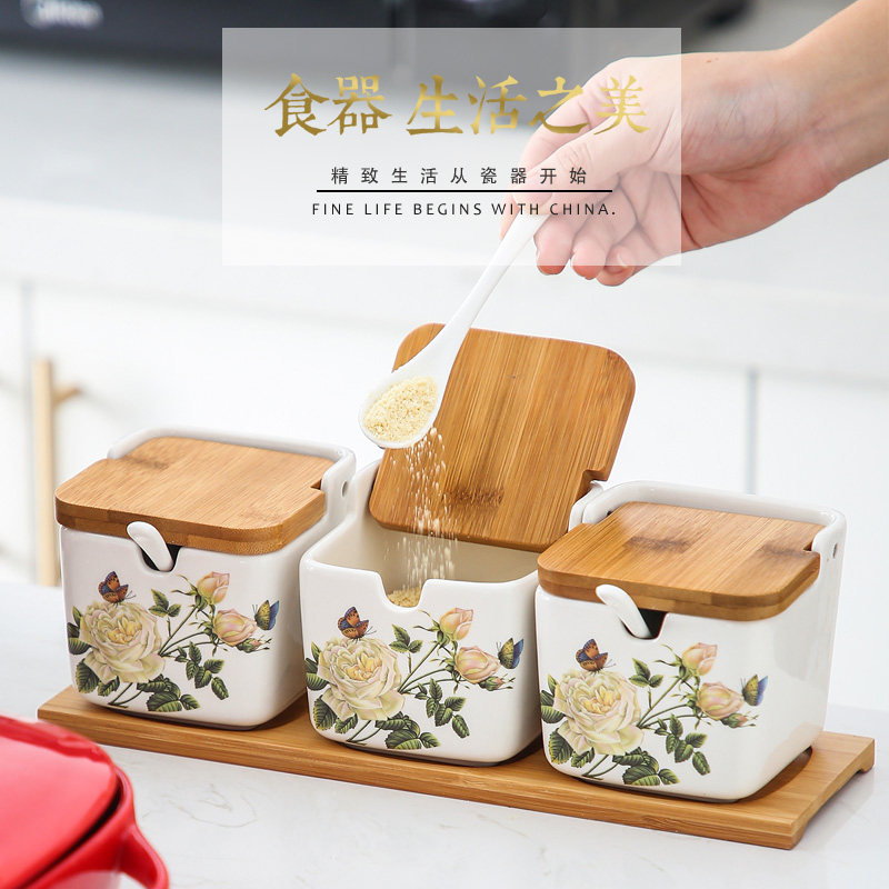 方形陶瓷调料盒组合套装家用糖盐辣椒调味瓶收纳盒...