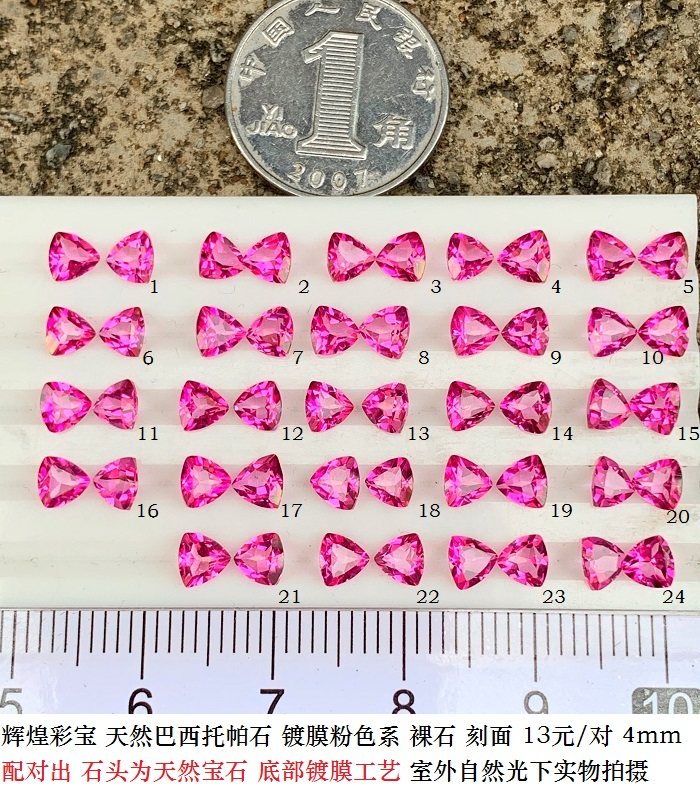 TP357 天然巴西托帕石 镀膜粉色系 裸石 13元/粒4mm...