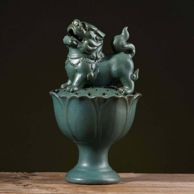 莲花狮子香炉仿古窑变陶瓷手工大号薰香炉禅意空间...