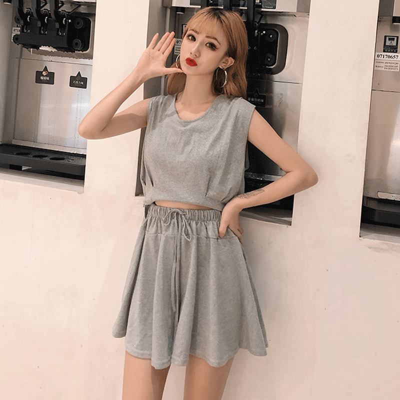 跑步运动套装女夏2020新款时尚后背交叉绑带背心+高...