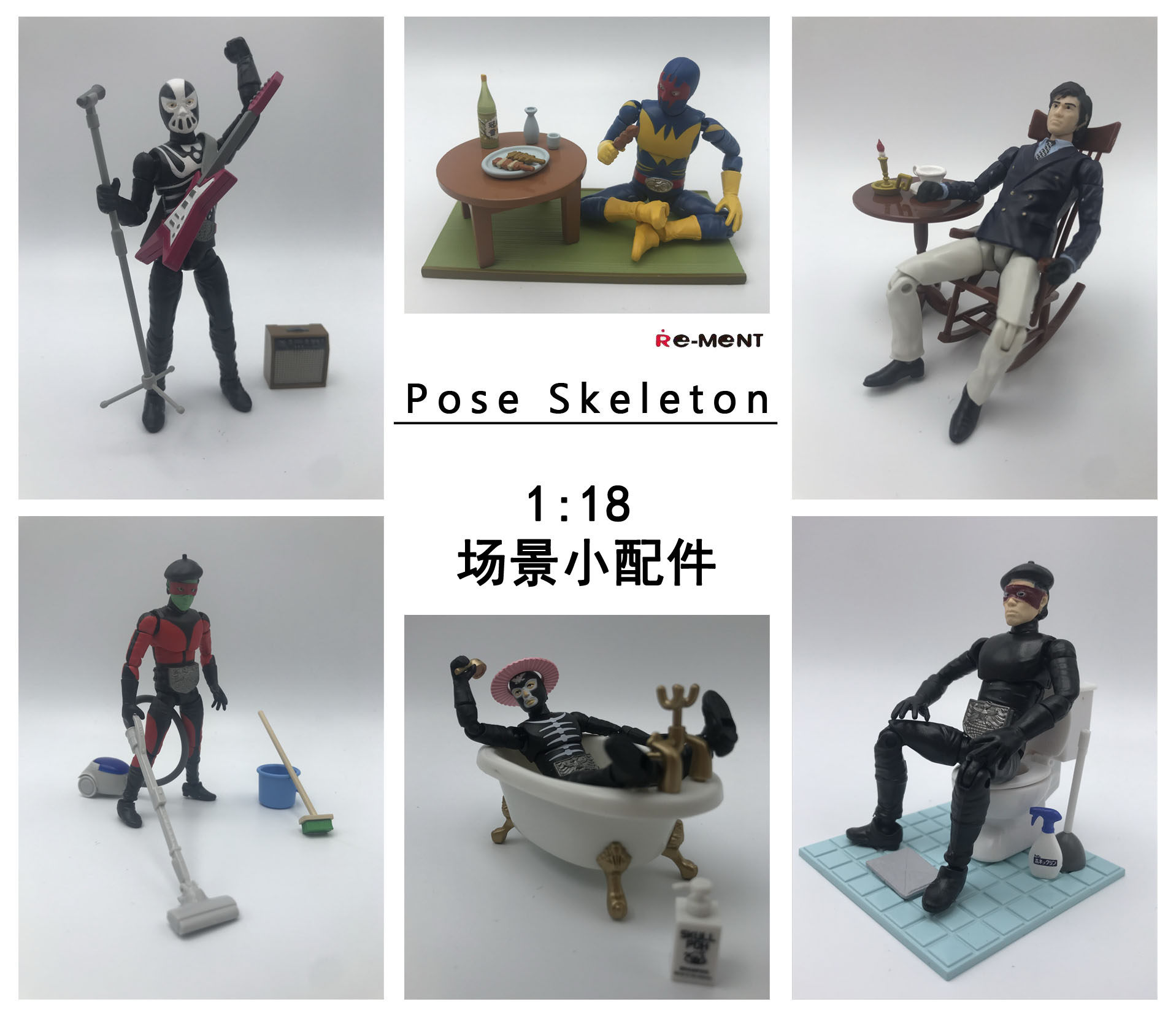 正版 Re-ment Pose Skeleton 骷髅人 1:18人偶 生活...