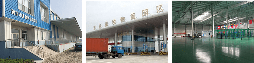 오마이집 중국 센터는 청도 보세물류 원구에 위치하고 있습니다. 출입 시 확인 절차를 거쳐야 합니다. (사진 가운데)