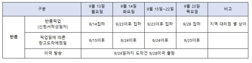 - 9월 16일~20일 집하된 건은 9월 23일 이후 순차 배송
